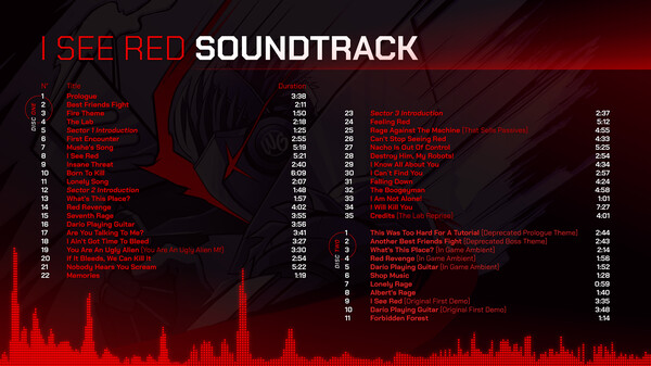 广受好评的 I See Red 原创配乐。两张激动人心的专辑,包含构成游戏动态音乐系统的所有曲目。获得机器人、外星人和人类足迹的最佳内容,以及一些秘密、遗产主题和独家额外内容!